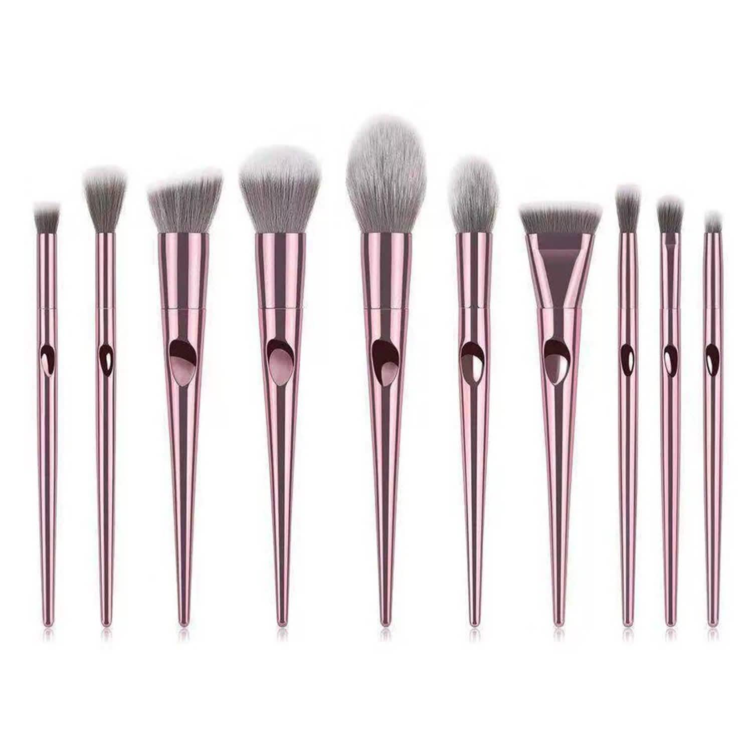 10-Piece: Metallic Premium Cosmetic Makeup Brushes Set